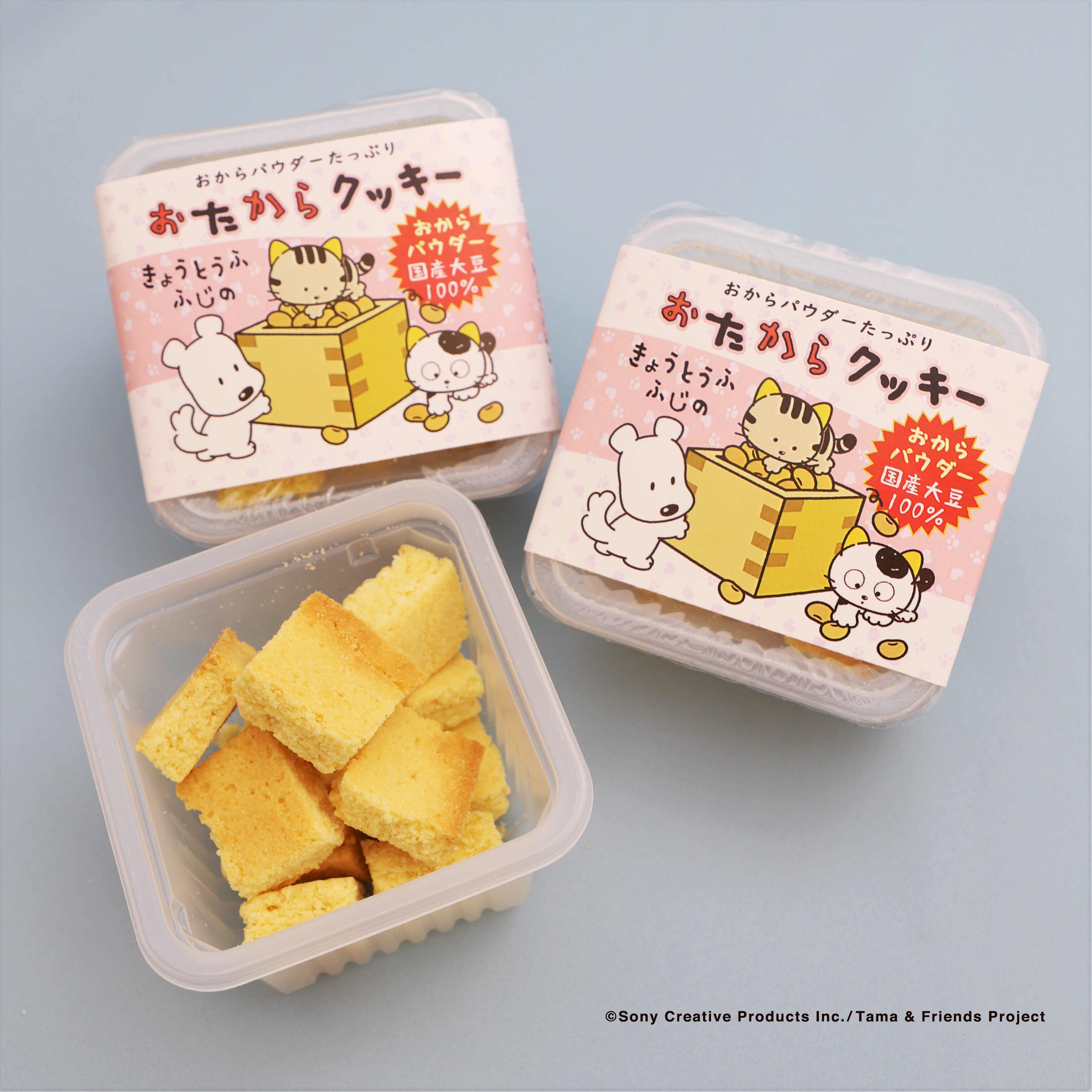 京とうふ藤野オリジナル、わんちゃん用おからクッキーに、「タマ&フレンズ」コラボパッケージが登場!豆腐やさんで作られる混じりけのないおからを独自の製法で乾燥させて粉末状にし、食物繊維はそのままに、オーガニック素材を使って、わんちゃんの体にやさしいクッキーを作ります。