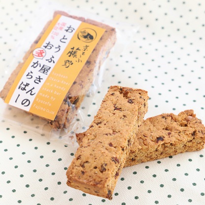 この度、このおから粉をたっぷり使って、食物繊維はそのままの「おとうふ屋さんのおたからばー」を開発しました。